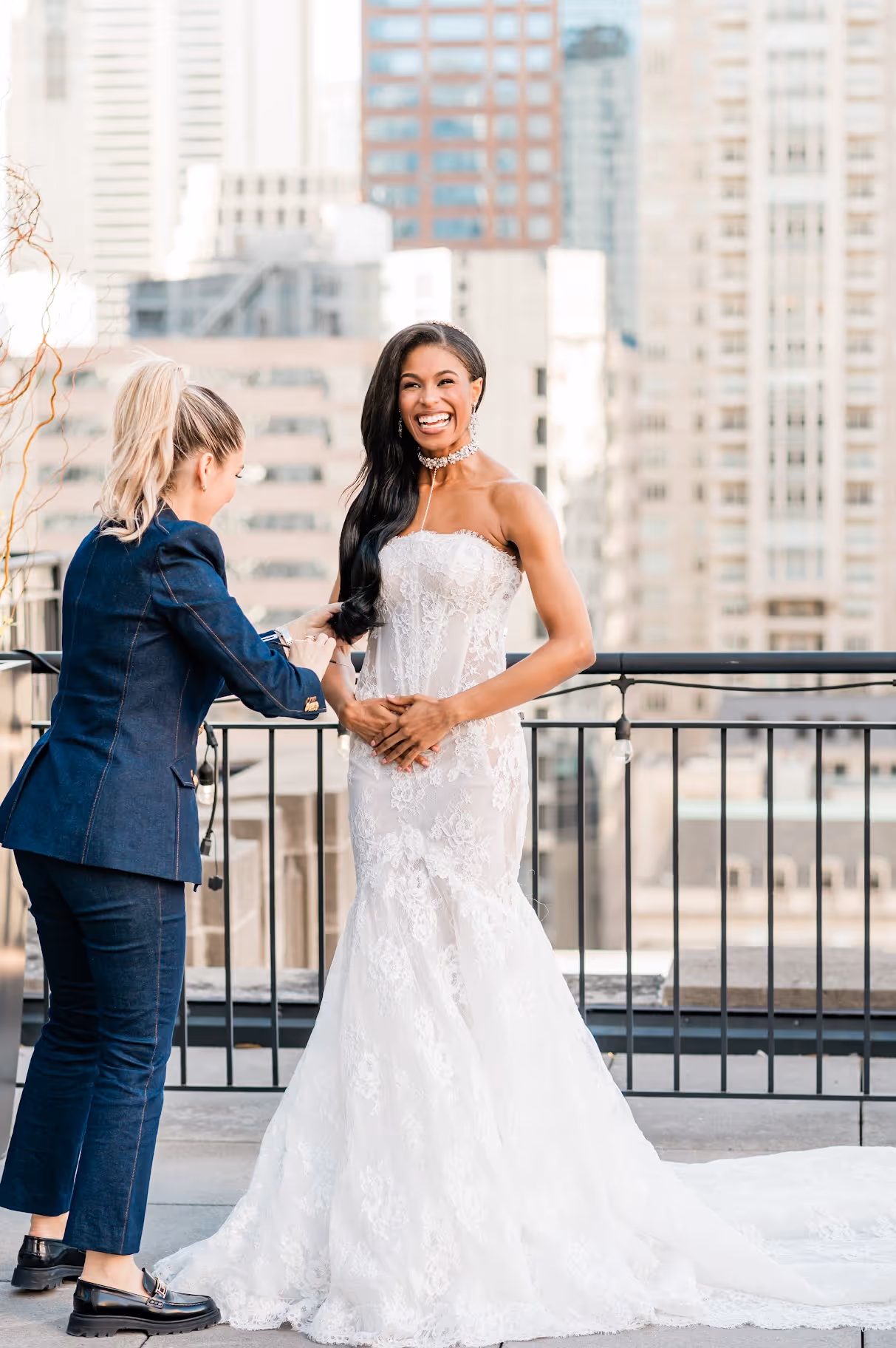 I’m with you from the first look to the last dance, offering discreet touch-ups, seamless style changes, and on-call support. You can stay fully present in your day knowing your look will hold through every moment.